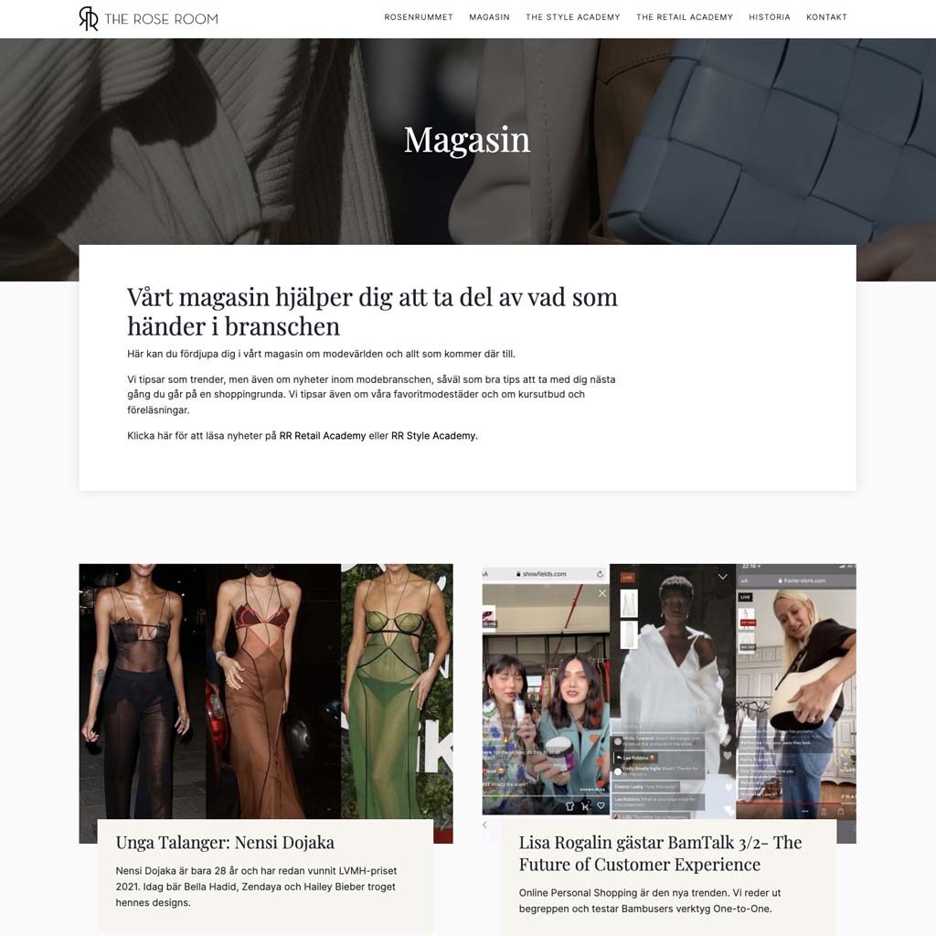 Great Graphics fick i uppdrag av Lisa Rogalin på the Rose Room att efter ha utvecklat Style Academy ta fram liknande sidor till moderbolaget theroseroom.com samt deras retail-avdelning theretailacademy.se. Lisa och hennes team hade en klar bild av hur de ville att hemsidorna skulle utformas. Tillsammans tog vi fram en design baserad på The Style Academy. Samtliga hemsidor gjordes även flerspråkiga.